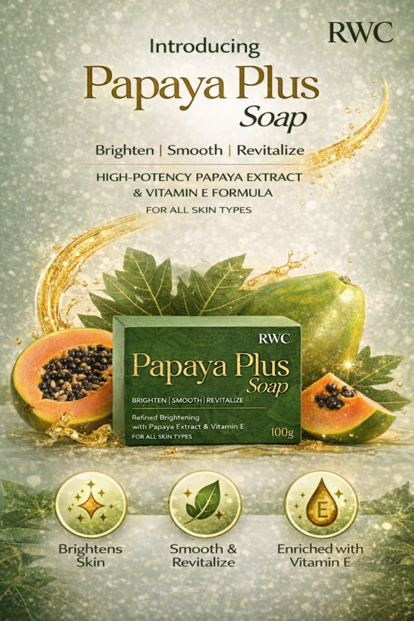 RWC Papaya Plus Soap is specially developed to cleanse while promoting a brighter, smoother-looking complexion. Enriched with high-potency Papaya Extract and Vitamin E, this gentle cleansing bar helps remove impurities and dull surface skin, leaving skin feeling soft, refreshed, and naturally radiant.